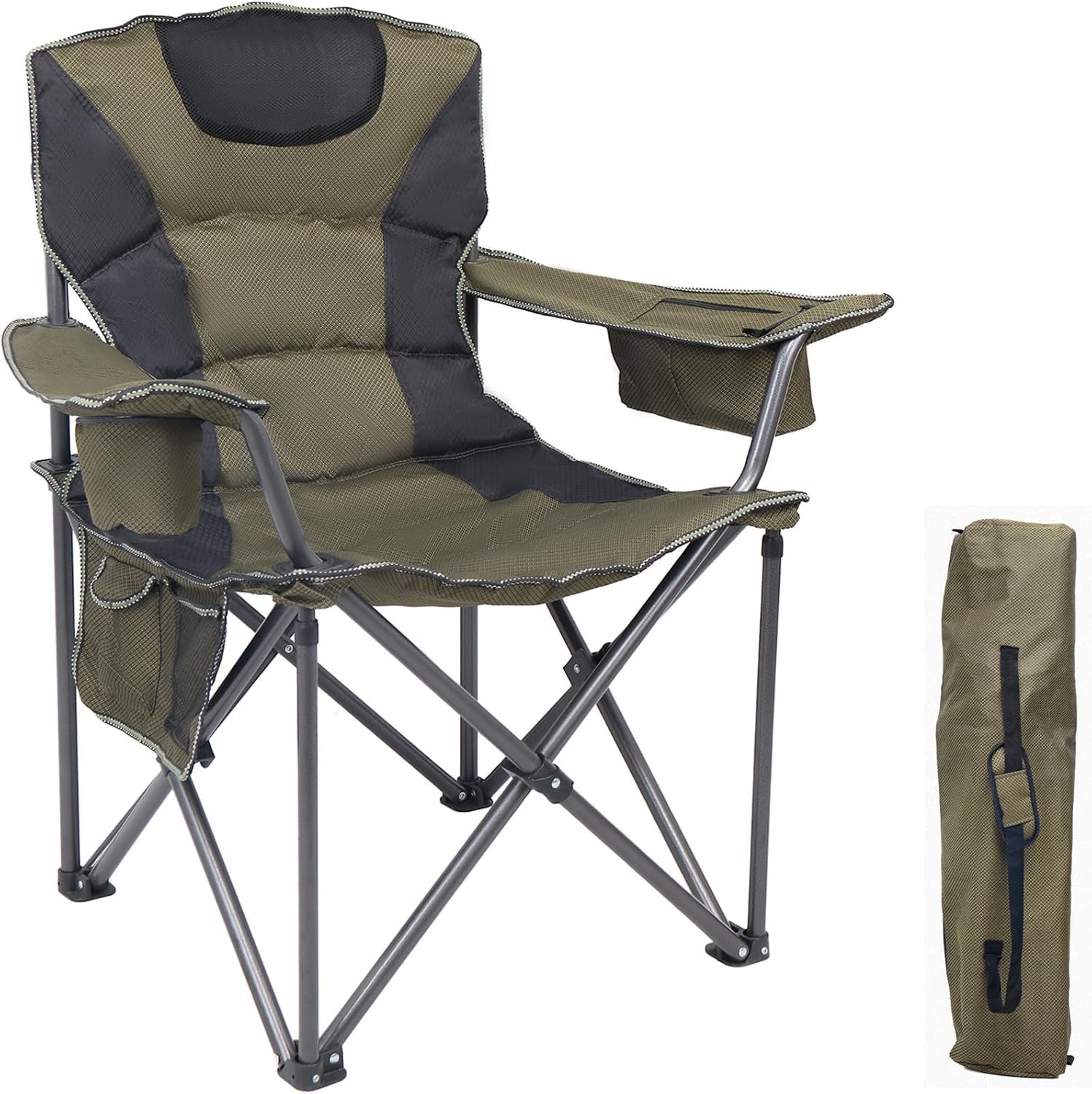 Outdoor Folding Chair Heavy Duty with Thick Cushion – Portable Camping Chair for Backyard, Beach & Hiking, 450lbs